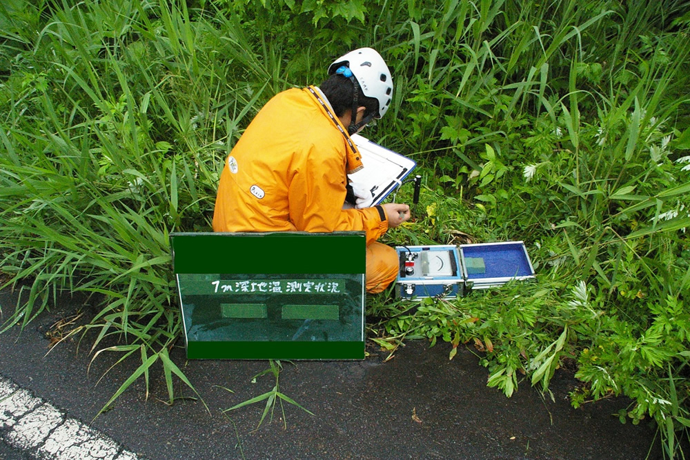 - 1m深地温探査は温泉や地下水の調査に使われる。ということは、地すべり調査にも有効!